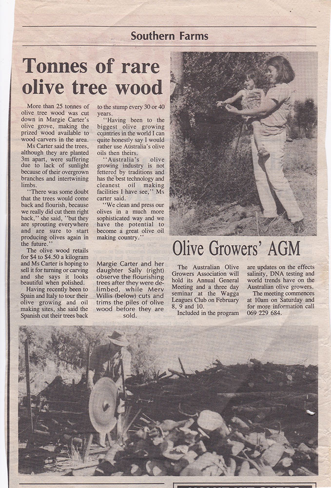 Having recently been to Spain and Italy to tour their olive growing and oil making sites, she said the Spanish cut their trees back to the stump every 30 or 40 years.